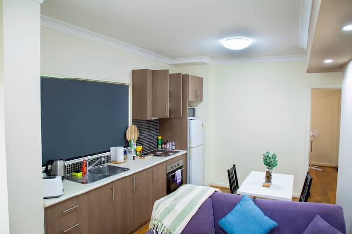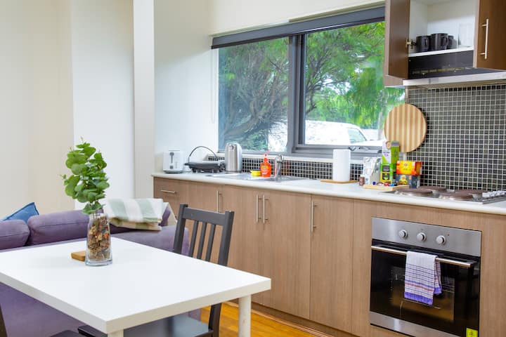 Enjoy a comfortable stay in this modern one-bedroom apartment at Parkville. Featuring a king-size bed and sofa bed in the living area.